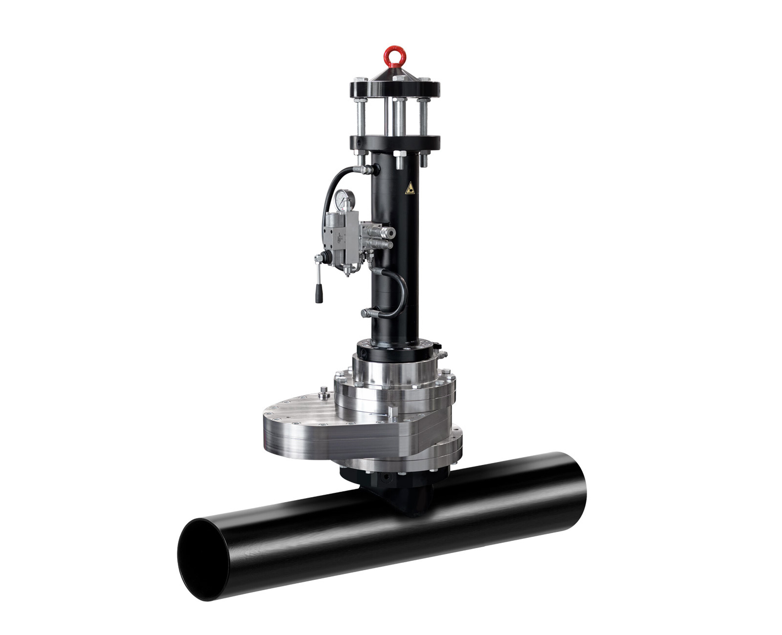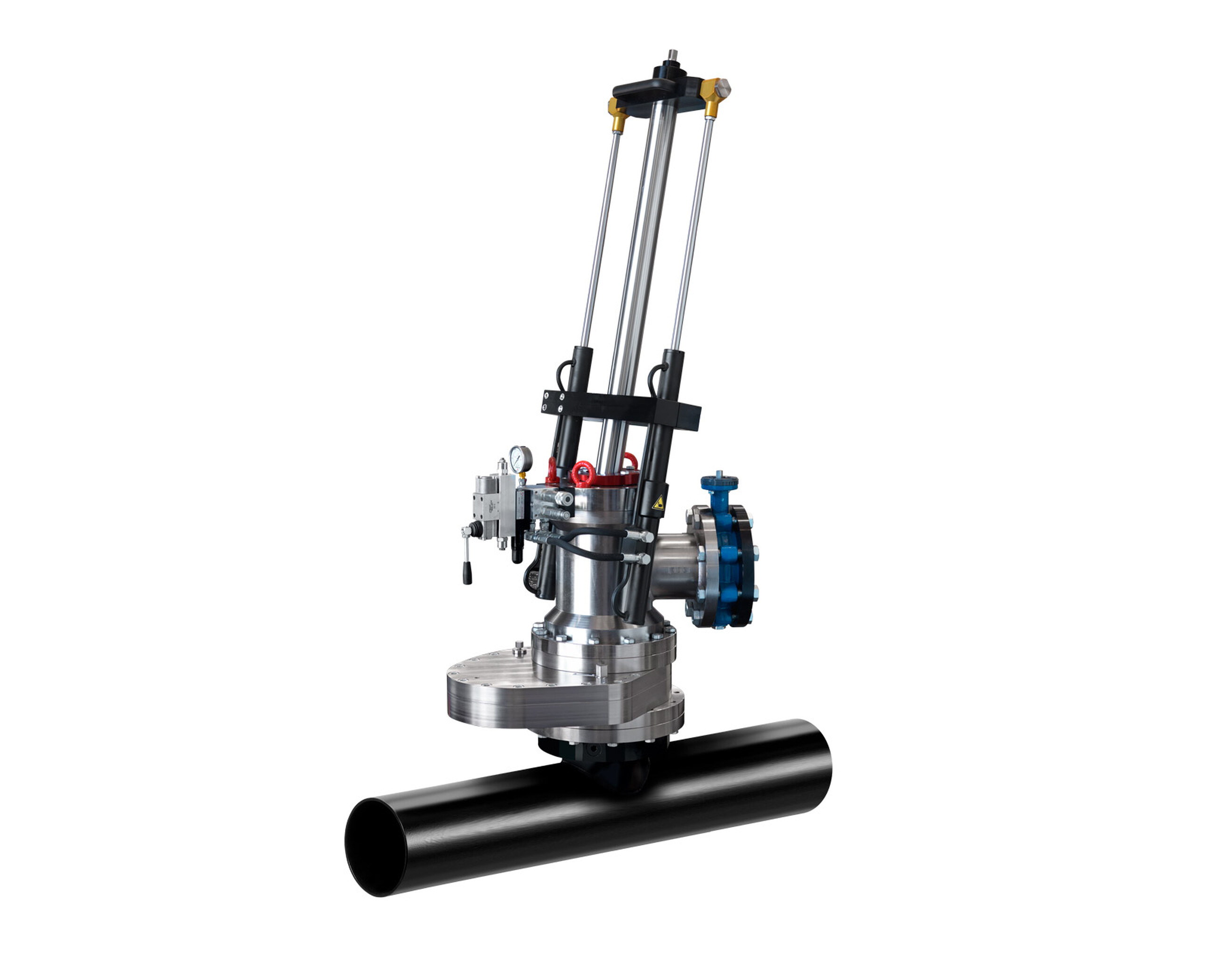 From DN 2” to 5” it's also provided with an innovative mechanical servo system which allows the stopper introduction with no need of hydraulic power.